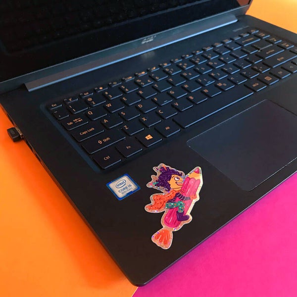 Plak de sticker op je favoriete schetsboek, je waterfles, laptop of op je lievelings kunstenaar!